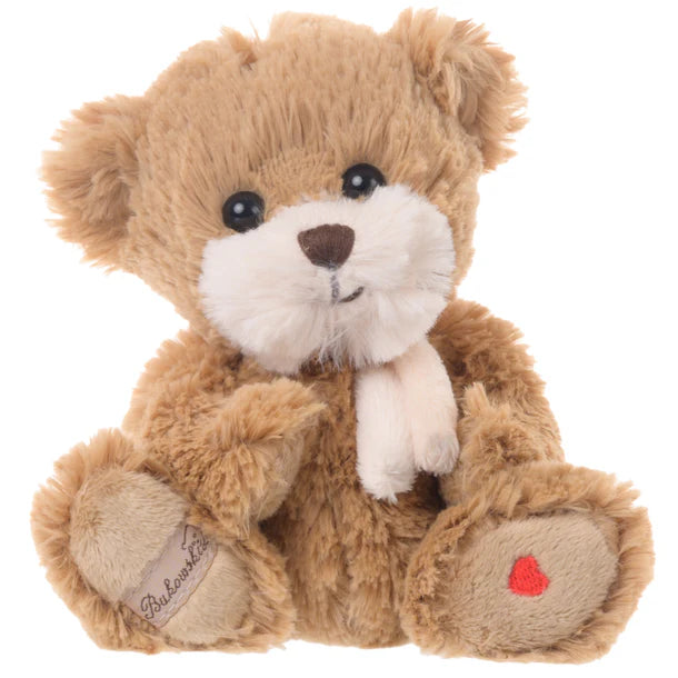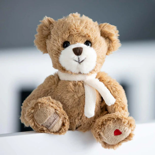Lovely Little Bukowski is destined for love. He is the tiniest family member and known for the bright red heart on his foot. His scarf is the perfect addition to his softness.