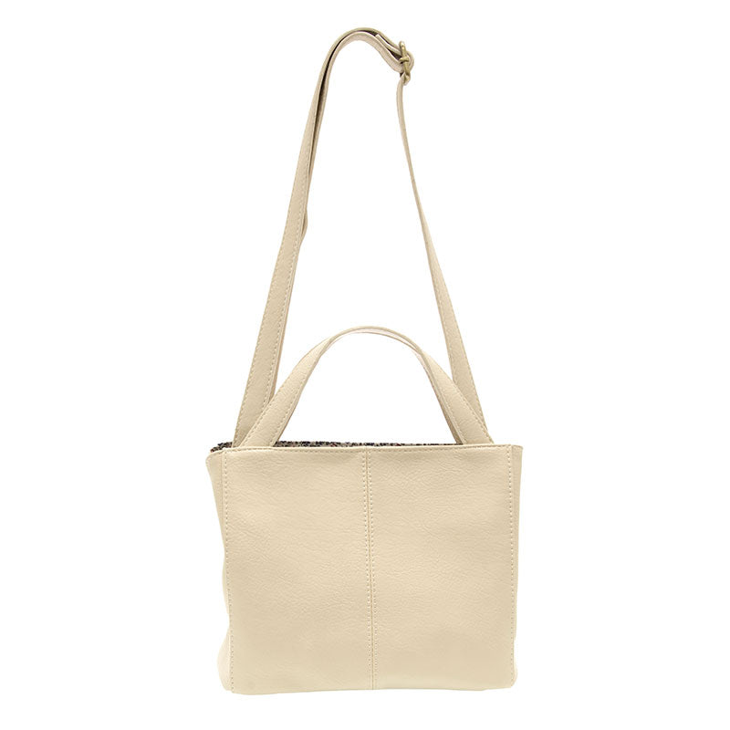- Three interior compartments: two magnetic snap closures, center with zip closure