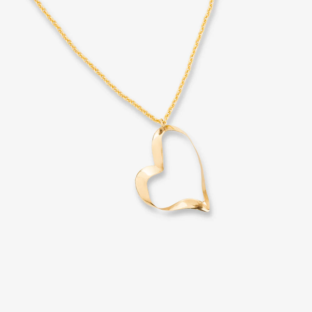 Wear your heart with pride with the Hope Ribbon Open Heart Pendant Necklace in Brass. Crafted from 99.95% Brass and 0.05% Gold, this necklace features a ribbon-inspired heart design, adding a touch of love and awareness to your ensemble.