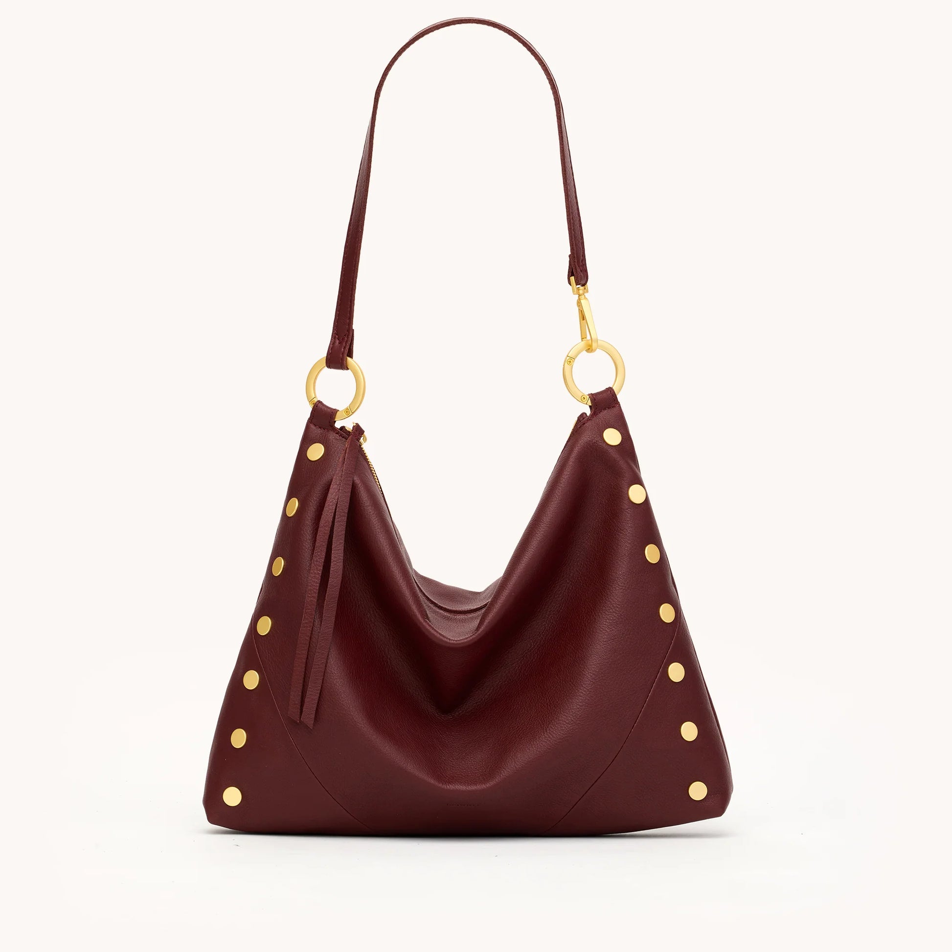 - Exterior: tassel zipper pull, o-rings for strap attachments, back zip cell pocket - vertical opening, zippered main compartment, diagonal seams