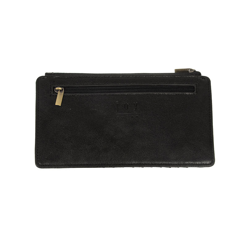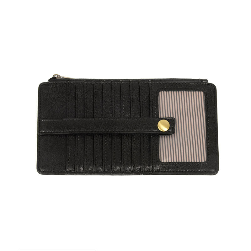 - This slim and sleek card wallet has 9 credit card pockets, an ID window, zippered change pocket and zippered billfold pocket all in casual distressed Vegan Leather.