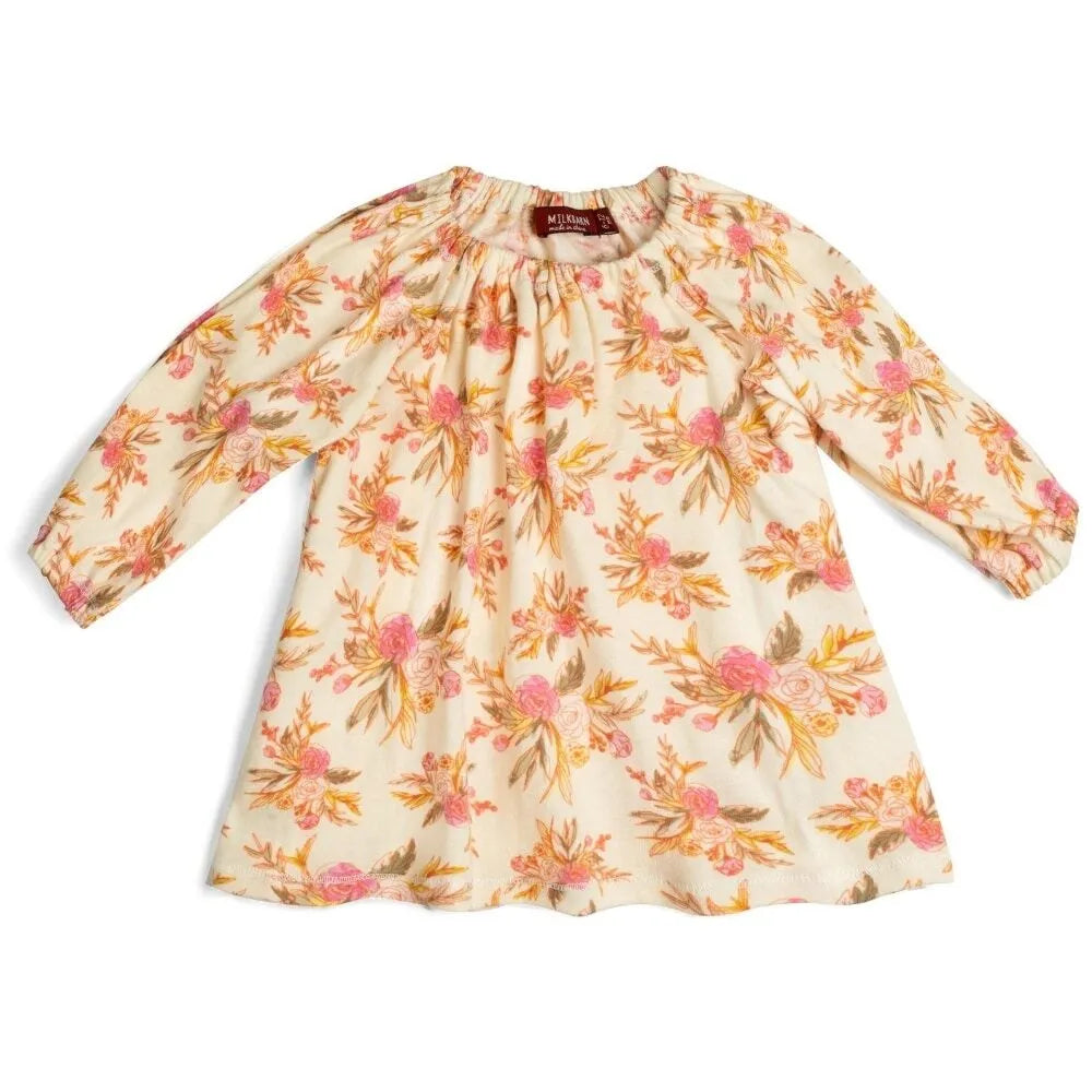 We encourage our little ones to skip and twirl in our free-form, organic cotton whimsical Dress & Legging Set in the Vintage Floral print. We paired the relaxed, long-sleeve silhouette with coordinating leggings. The elastic crew neckline and waist allow for ease of dressing and movement.