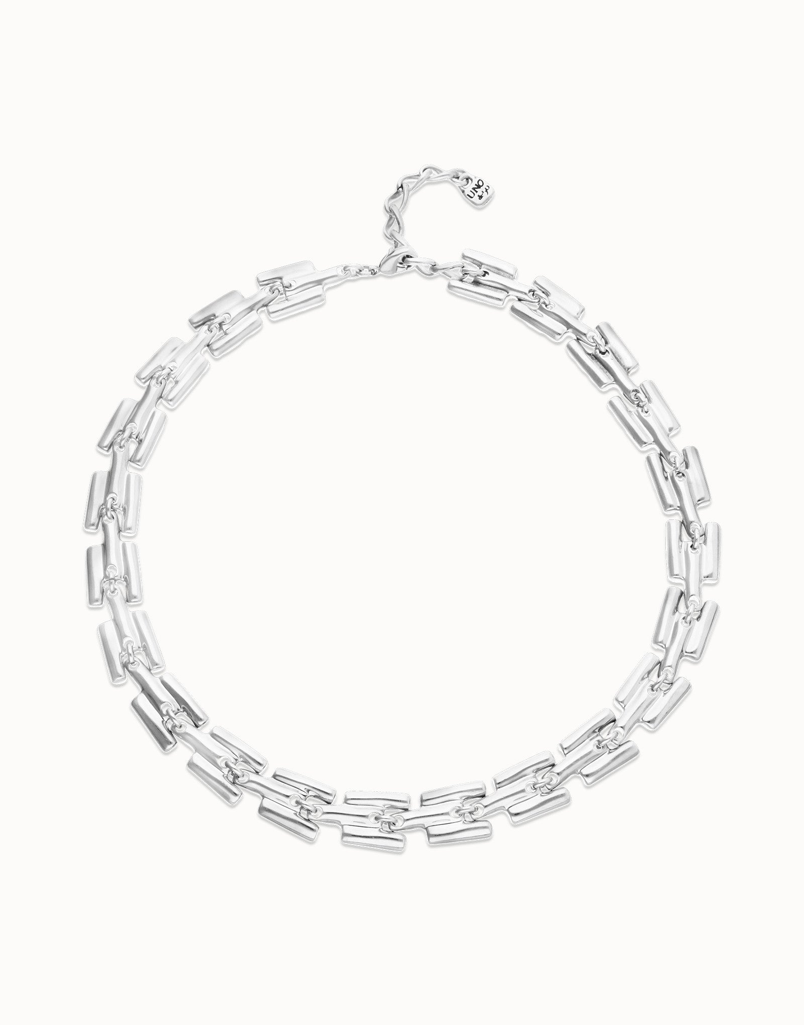 Necklace with links that create a unique, sophisticated contrast.