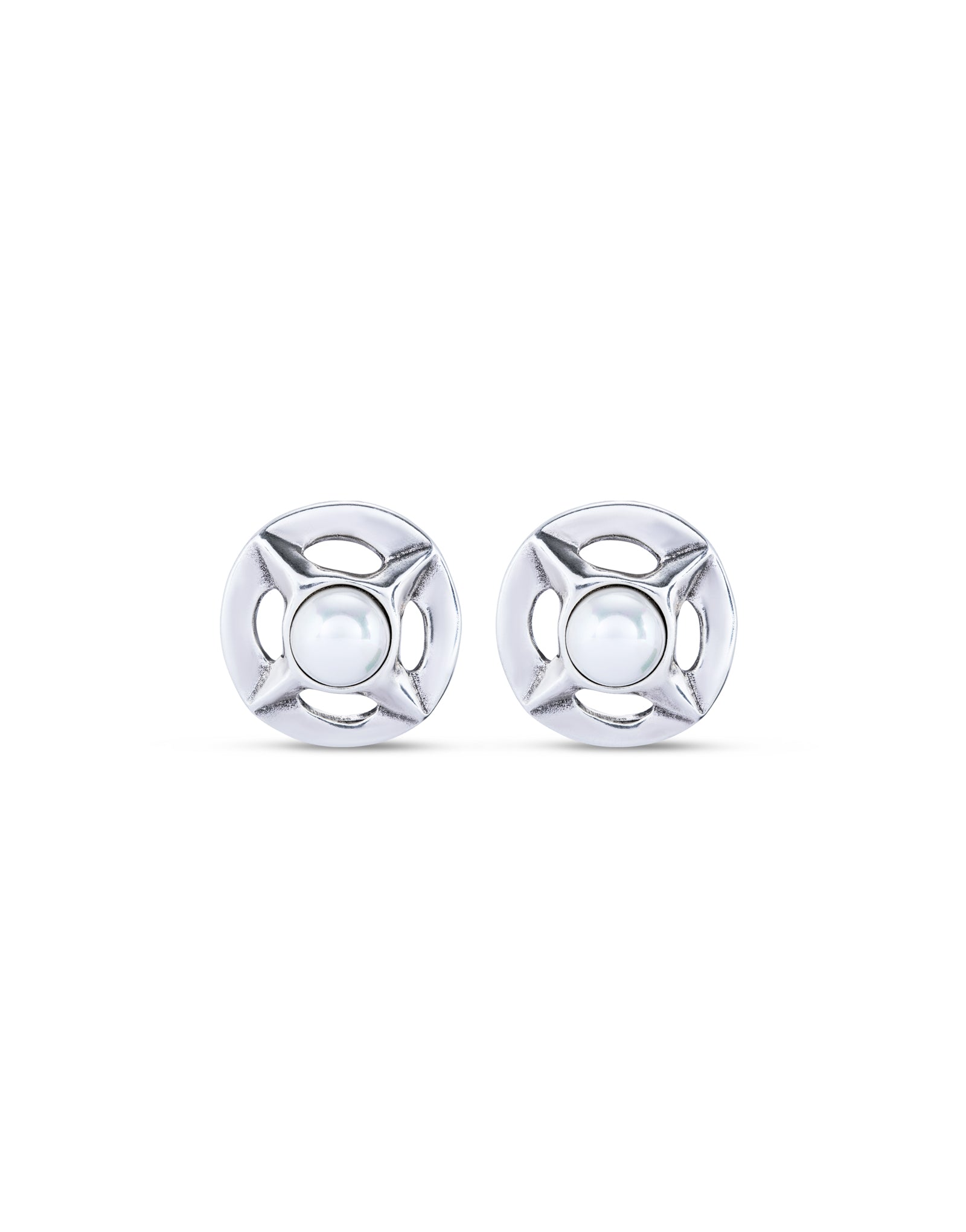 Sterling silver plated metal alloy earrings with link and Shell Pearl.