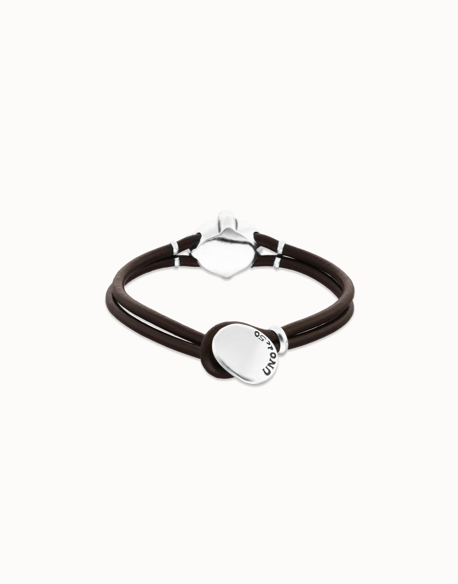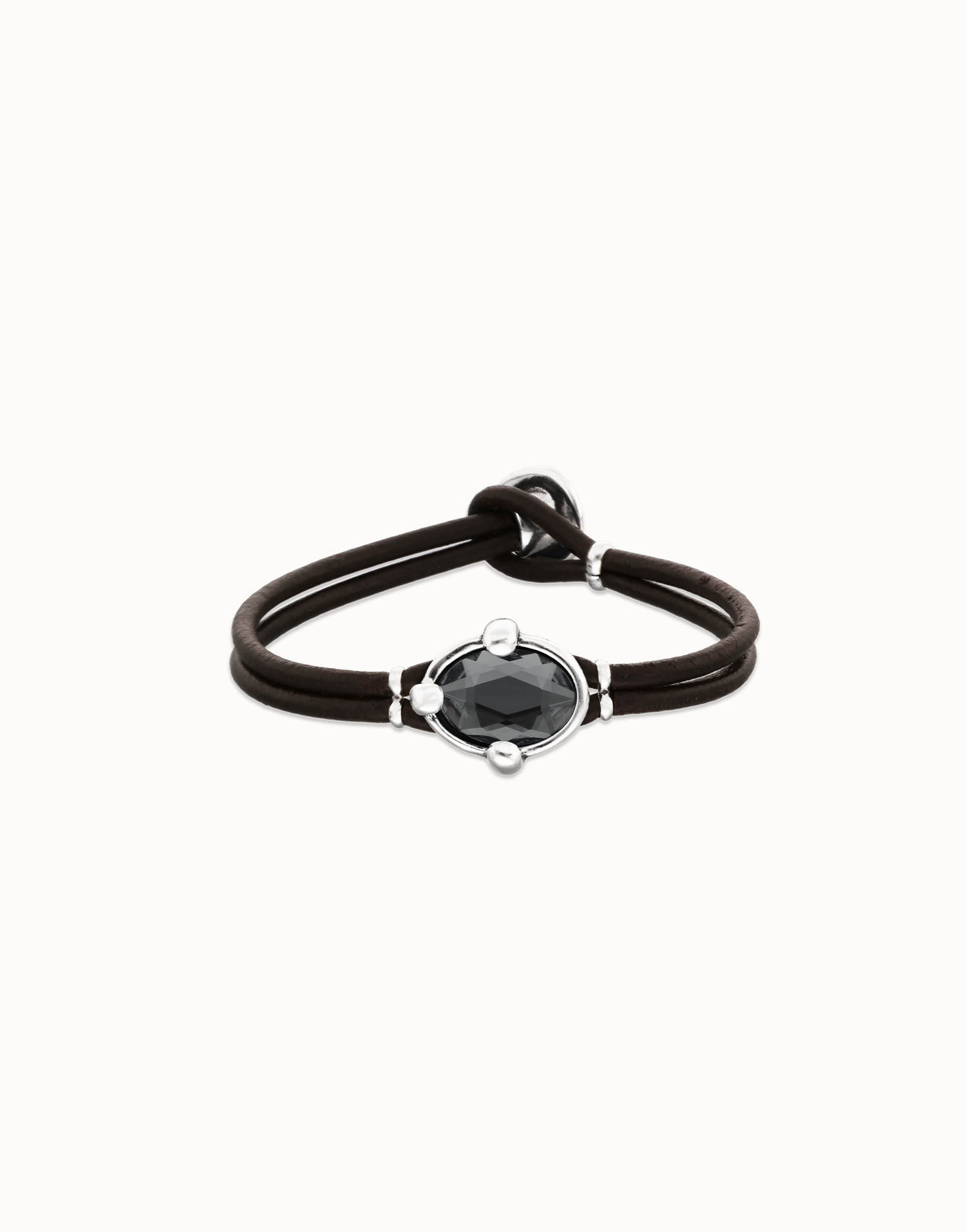 The warmth of the leather and the coolness of the metal create a bold contrast, elevating the subtlety of the crystal.