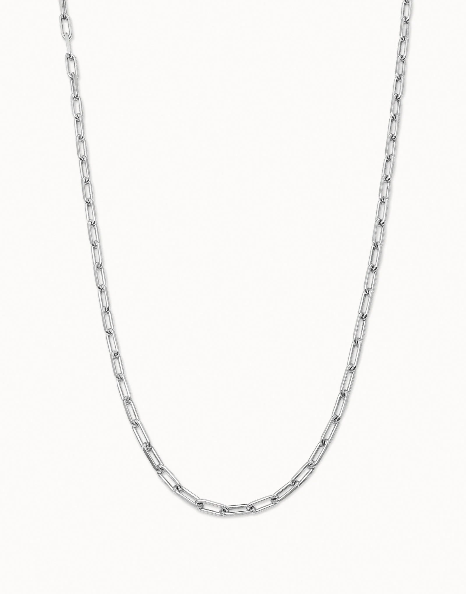 Long unisex sterling silver-plated chain with narrow and elongated links. A jewel that can be worn alone or with charms.